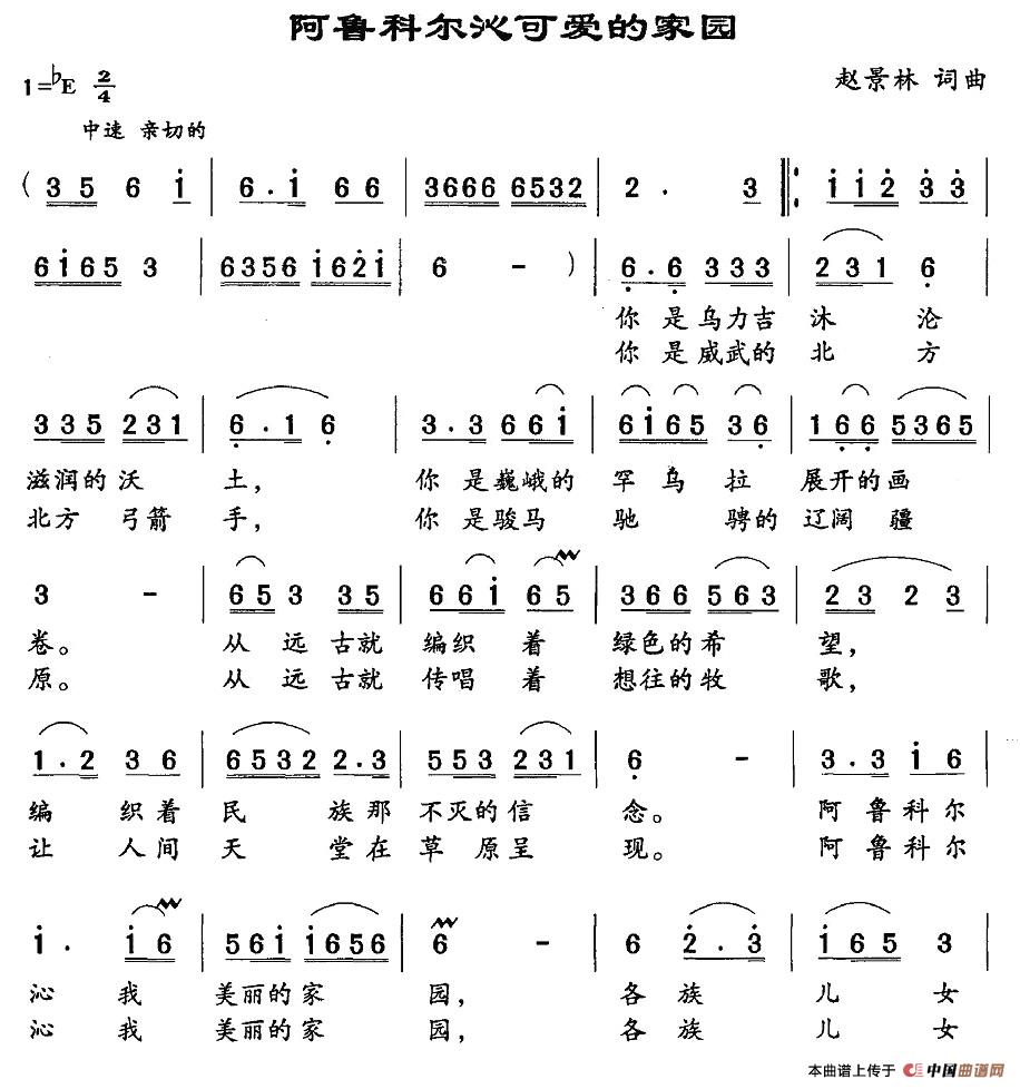 关于《阿鲁科尔沁可爱的家园》曲谱的评论