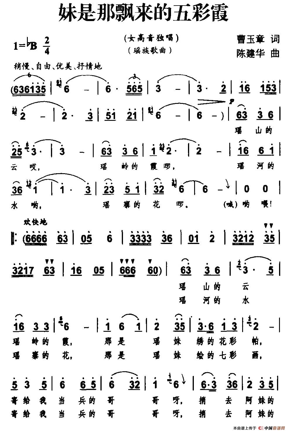 关于《妹是那飘来的五彩霞》曲谱的评论