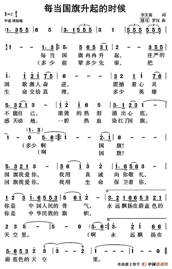 每当国旗升起的时候(李文英词 聂耳、罗汉曲)