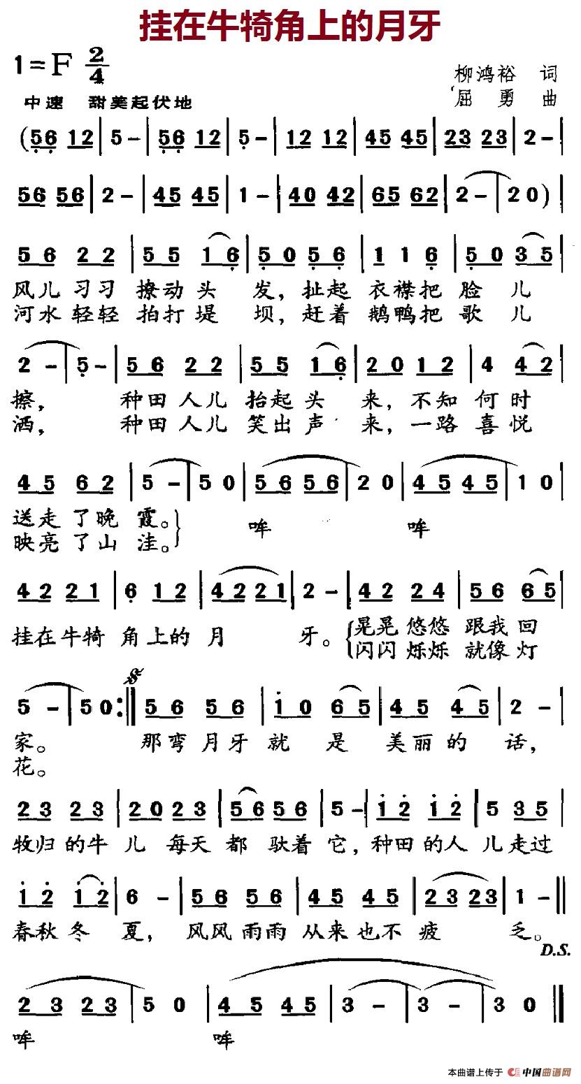关于《挂在牛犄角上的月牙》曲谱的评论