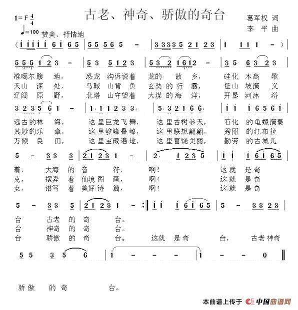 关于《古老、神奇、骄傲的奇台》曲谱的评论