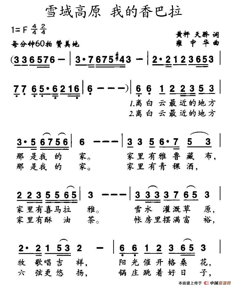 关于《雪域高原 我的香巴拉》曲谱的评论
