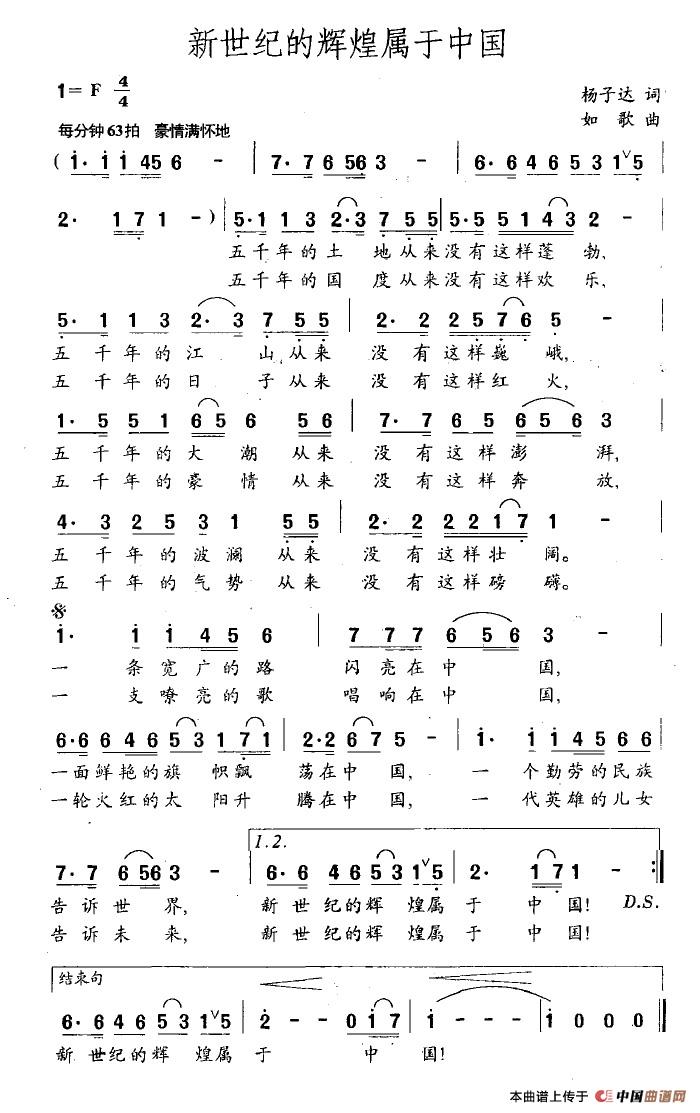 关于《新世纪的辉煌属于中国》曲谱的评论