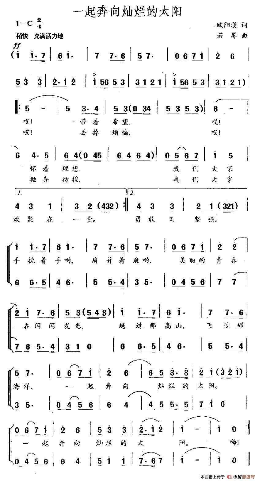 关于《一起奔向灿烂的太阳》曲谱的评论
