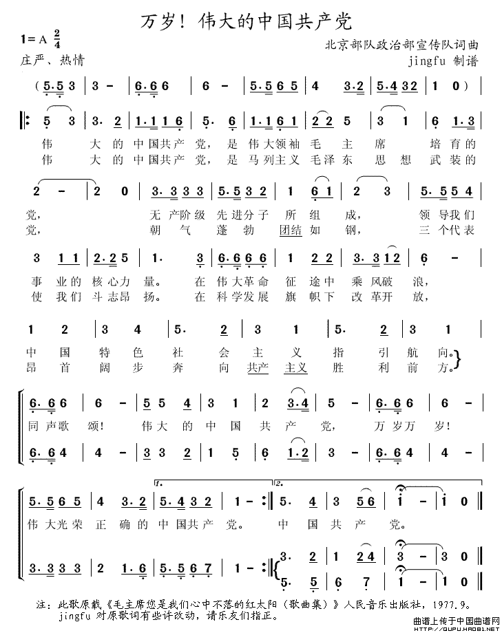 格式:简谱 来源:谱友jingfu 制谱上传 上传:秋叶起舞