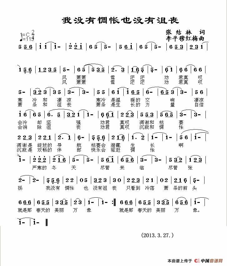 关于《我没有惆怅也没有沮丧》曲谱的评论