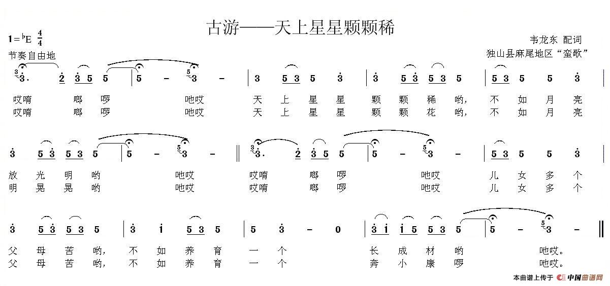 关于《古游—天上星星颗颗稀》曲谱的评论
