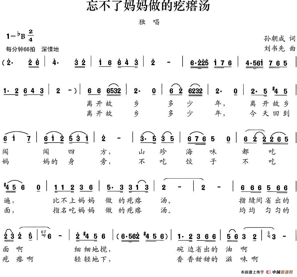 关于《忘不了妈妈做的疙瘩汤》曲谱的评论