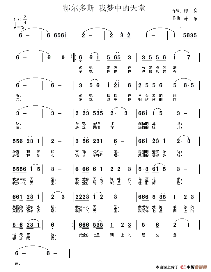 关于《鄂尔多斯 我梦中的天堂》曲谱的评论