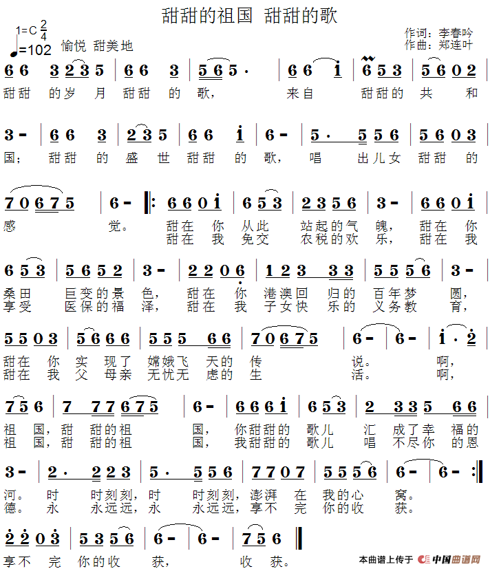 关于《甜甜的祖国 甜甜的歌》曲谱的评论