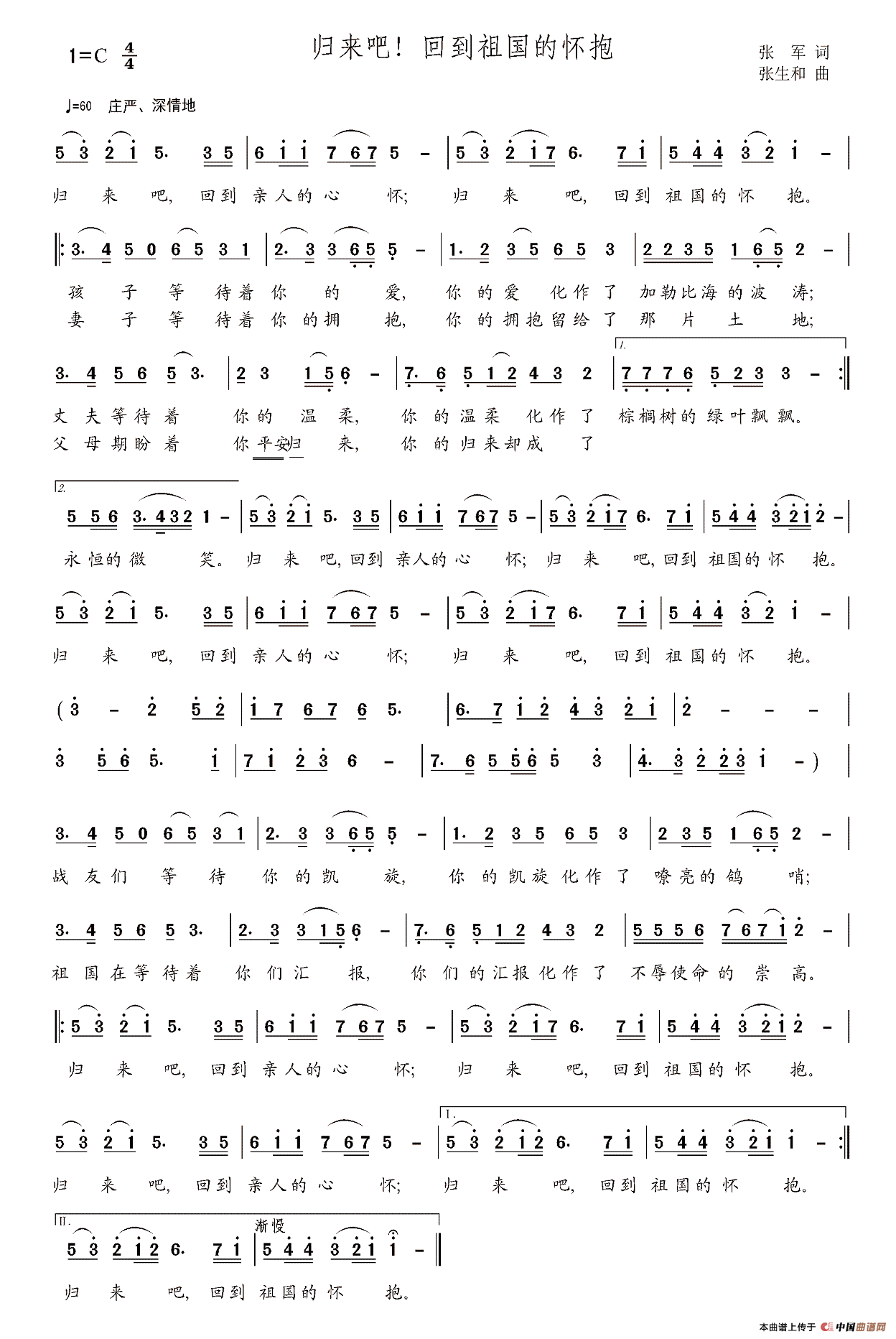 关于《归来吧!回到祖国的怀抱》曲谱的评论