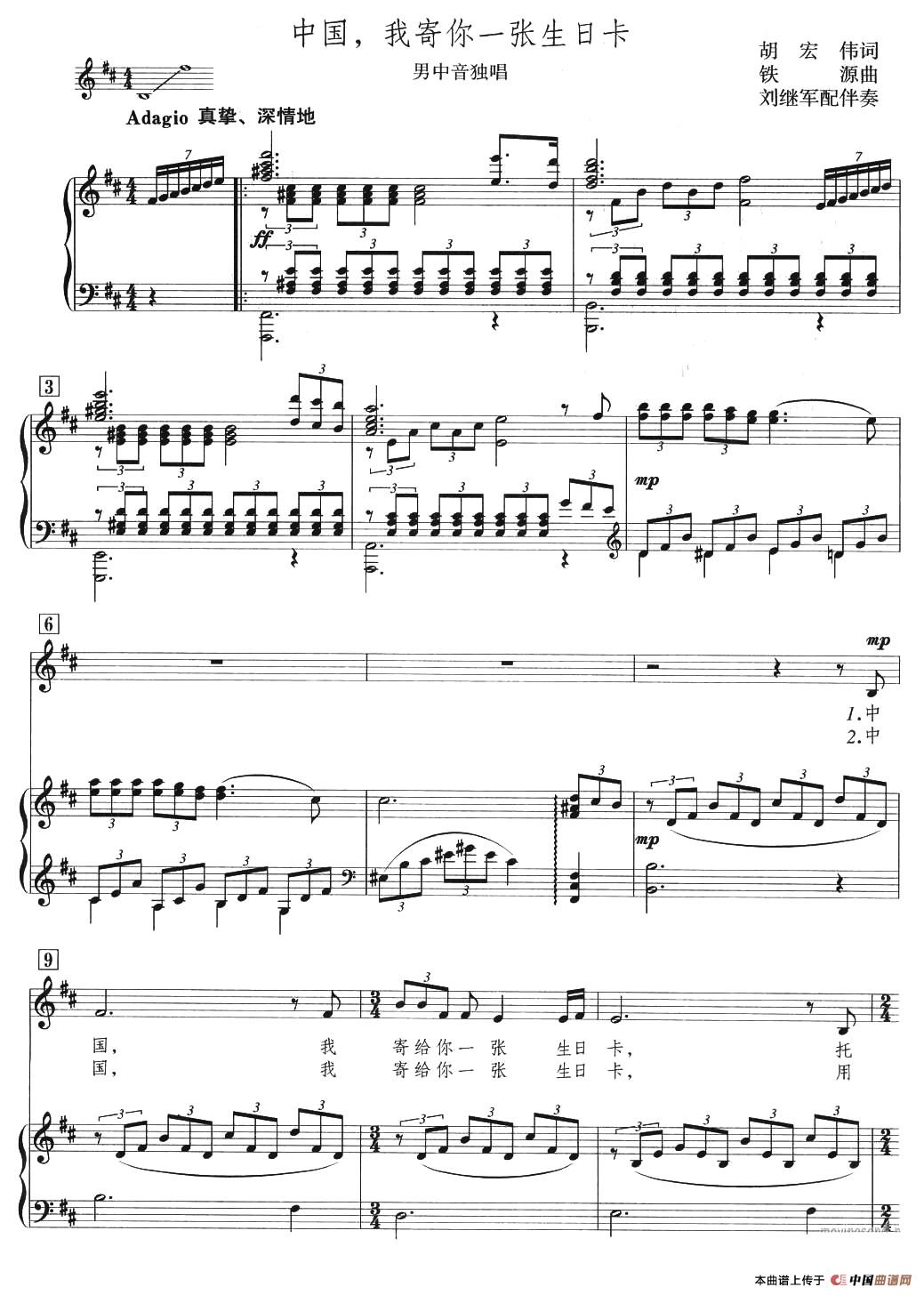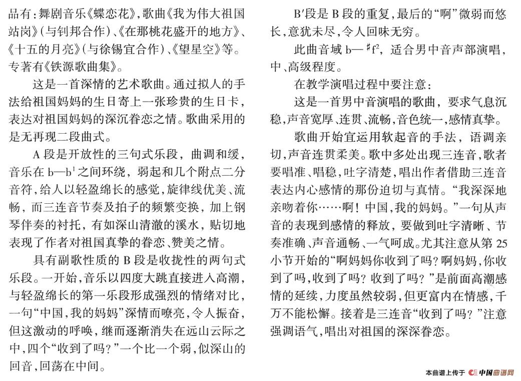 关于《中国,我寄你一张生日卡》曲谱的评论