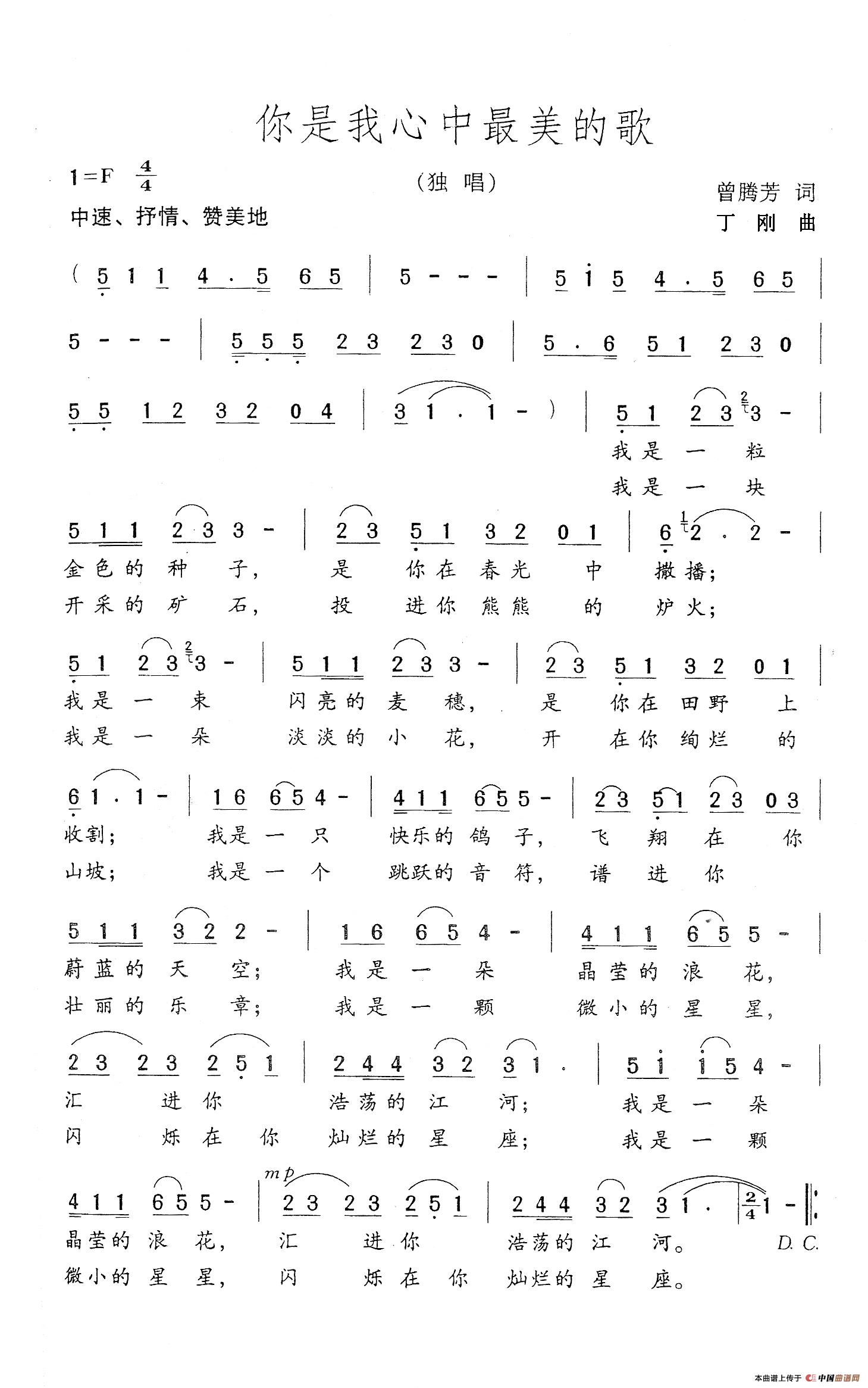 关于《你是我心中最美的歌》曲谱的评论