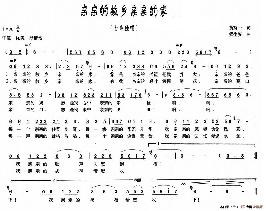 关于《亲亲的故乡亲亲的家》曲谱的评论