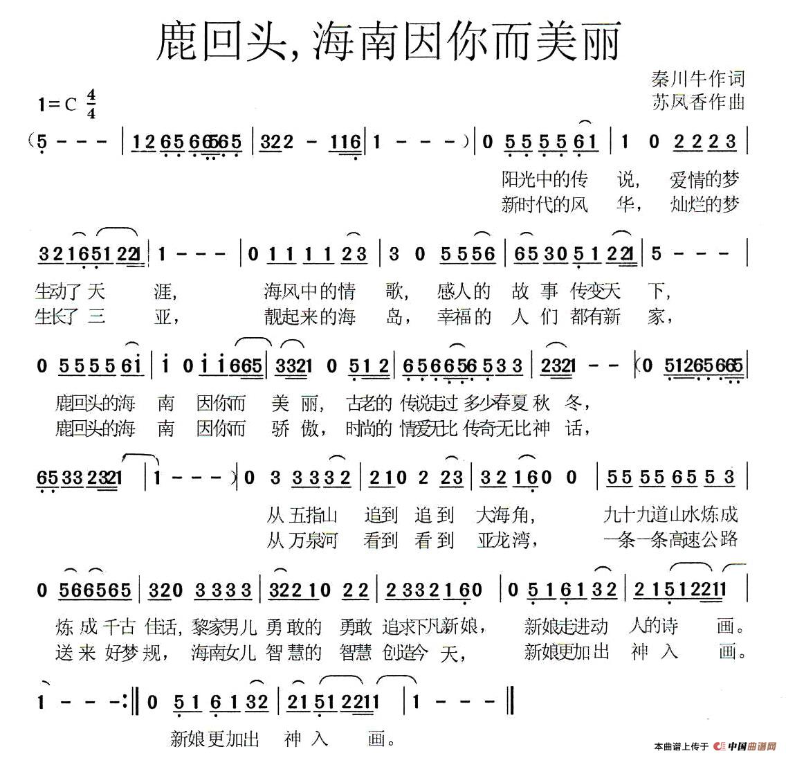 关于《鹿回头,海南因你而美丽》曲谱的评论