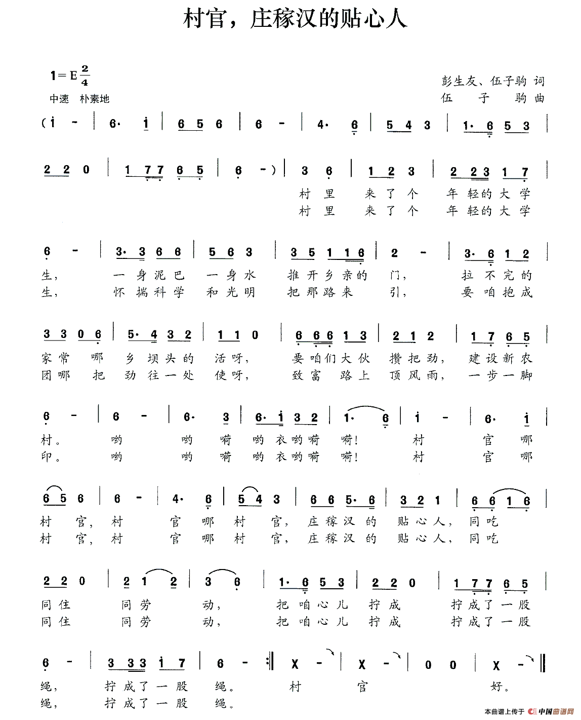 关于《村官,庄稼汉的贴心人》曲谱的评论