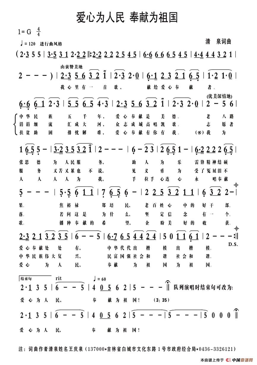 关于《爱心为人民 奉献为祖国》曲谱的评论