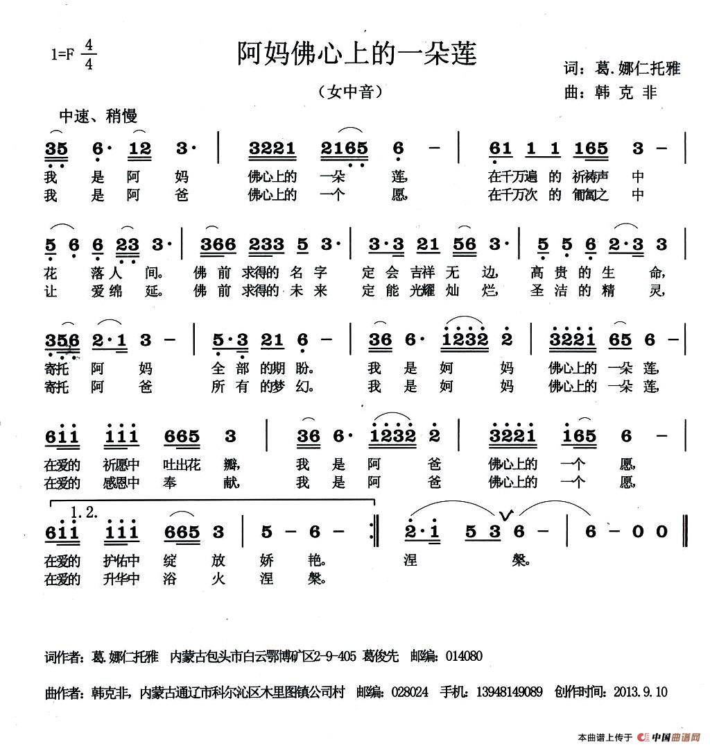 关于《阿妈佛心上的一朵莲》曲谱的评论