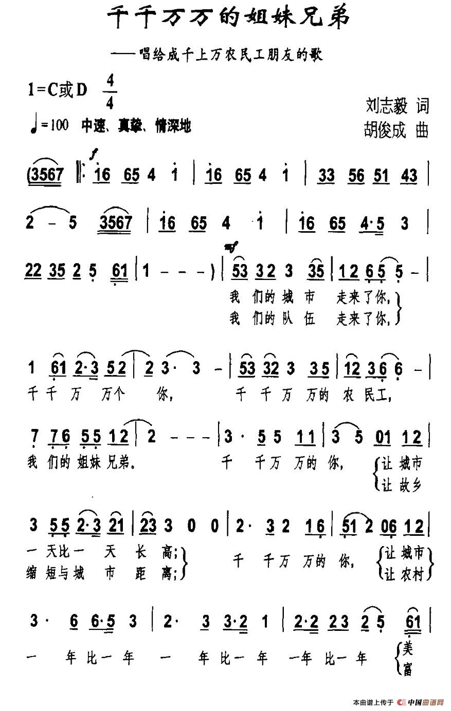 关于《千千万万的姐妹兄弟》曲谱的评论