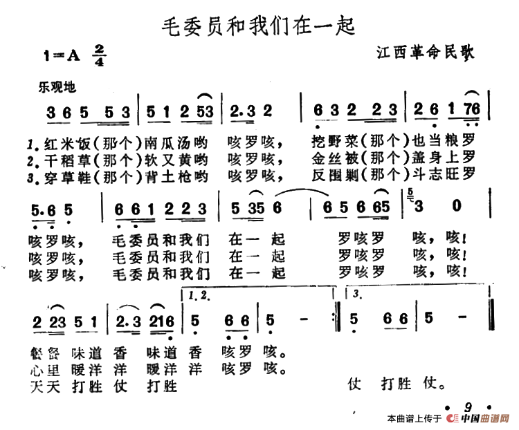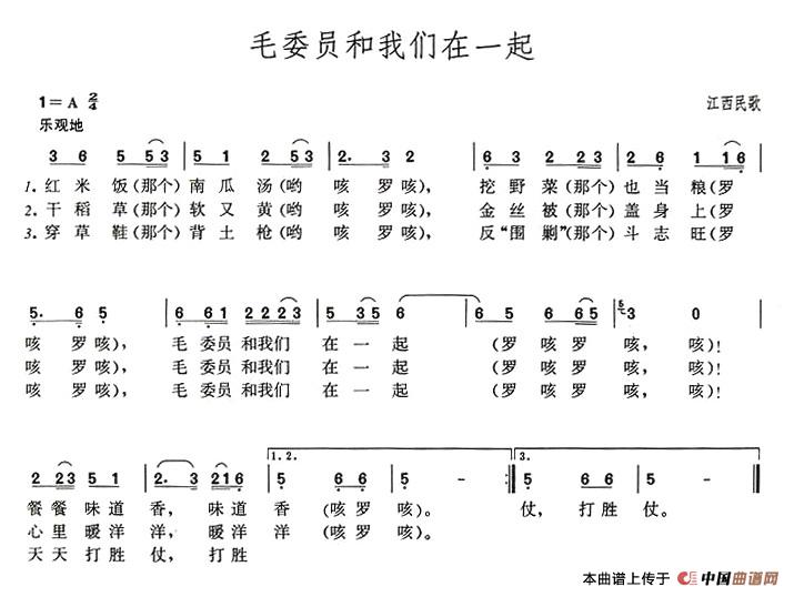 1974年,在全国第三届《战地新歌》征集活动中,江西有近十首歌曲入选,被称为是江西民歌的一次集体亮相和重磅出击。其中,男声小合唱《毛委员和我们在一起》也在那时脱颖而出。歌曲来自于一首苏区红色歌谣,由颂刚、春森、向义编曲,山樵、永立编词。