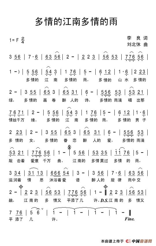 关于《多情的江南多情的雨》曲谱的评论