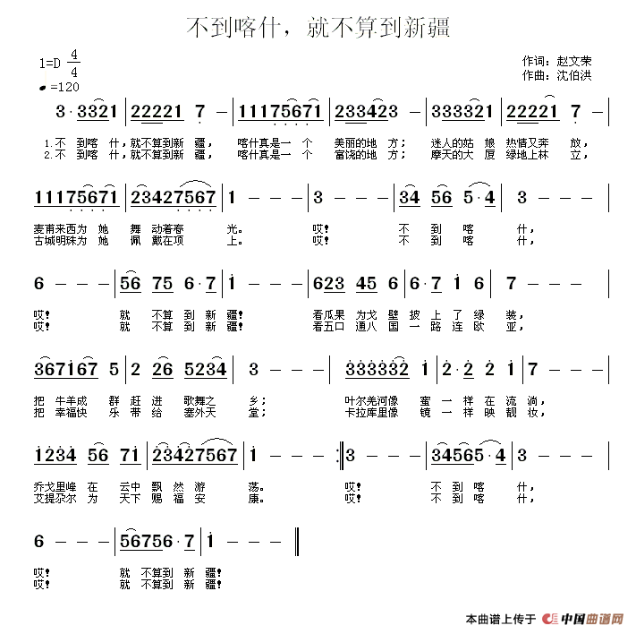 关于《不到喀什,就不算到新疆》曲谱的评论