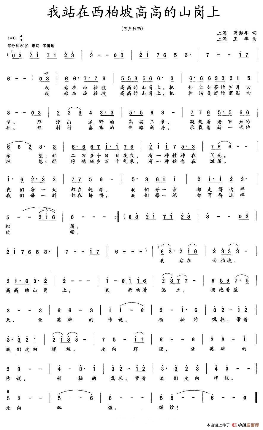 关于《我站在西柏坡高高的山岗上》曲谱的评论