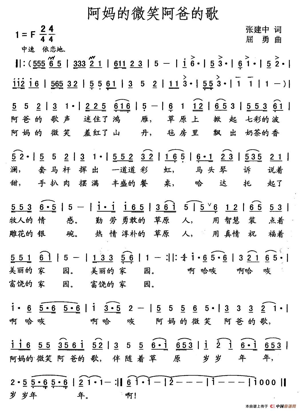 关于《阿妈的微笑阿爸的歌》曲谱的评论