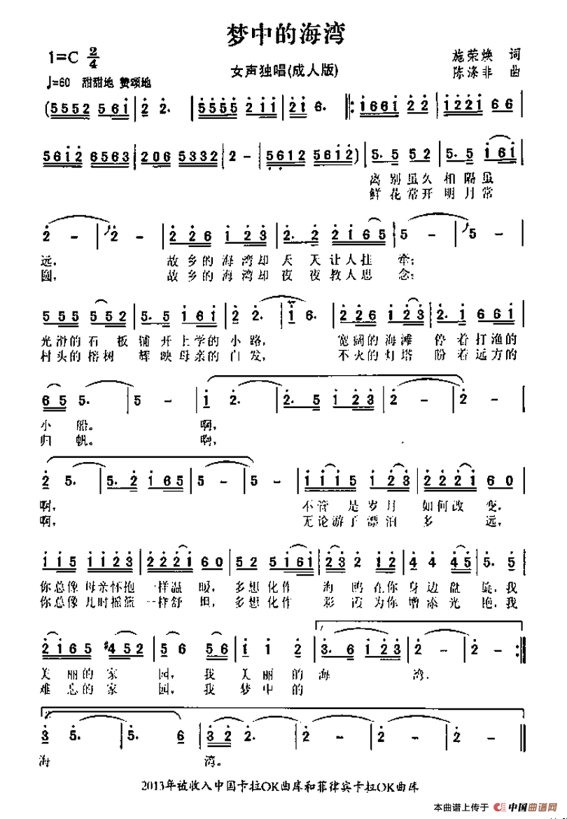 提示:在曲谱图片上单击右键,选择"图片另存为..."即可将曲谱保存到您的电脑中,打印时候可将图片插入到WORD中,调整合适大小打印即可。