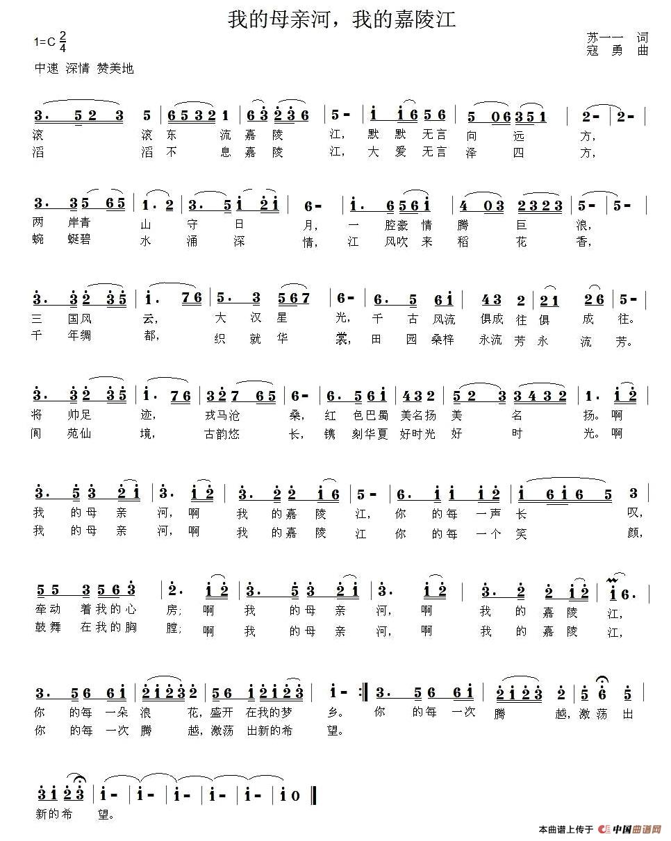 关于《我的母亲河,我的嘉陵江》曲谱的评论