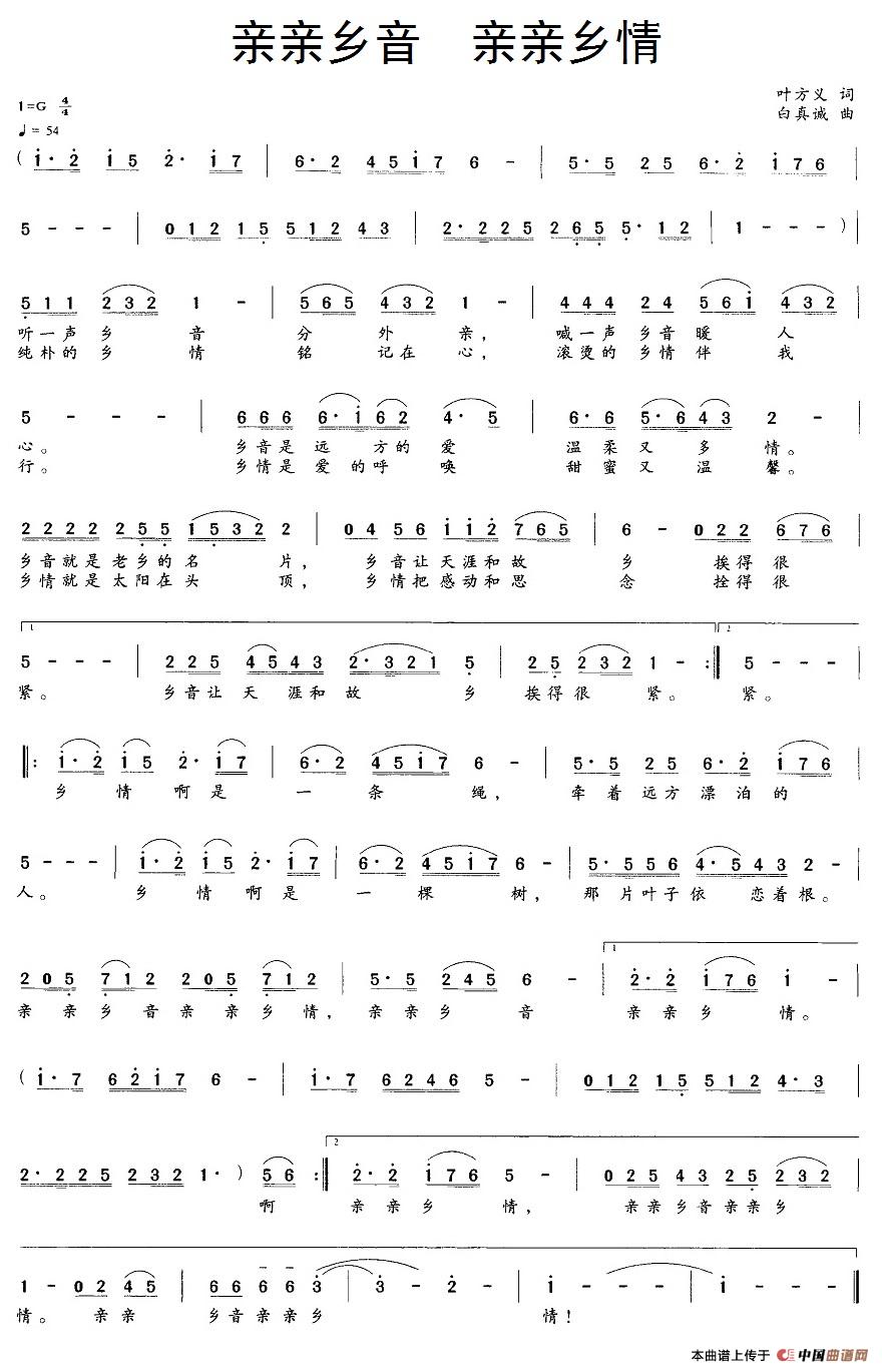 关于《亲亲乡音 亲亲乡情》曲谱的评论
