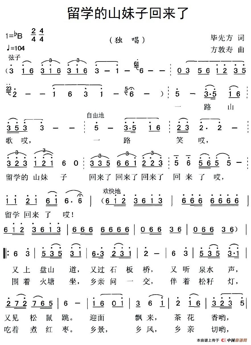 作词:毕先方 作曲:方敦寿 来源:中国曲谱网 上传:北京娃娃