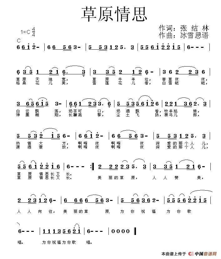 关于《草原情思》曲谱的评论