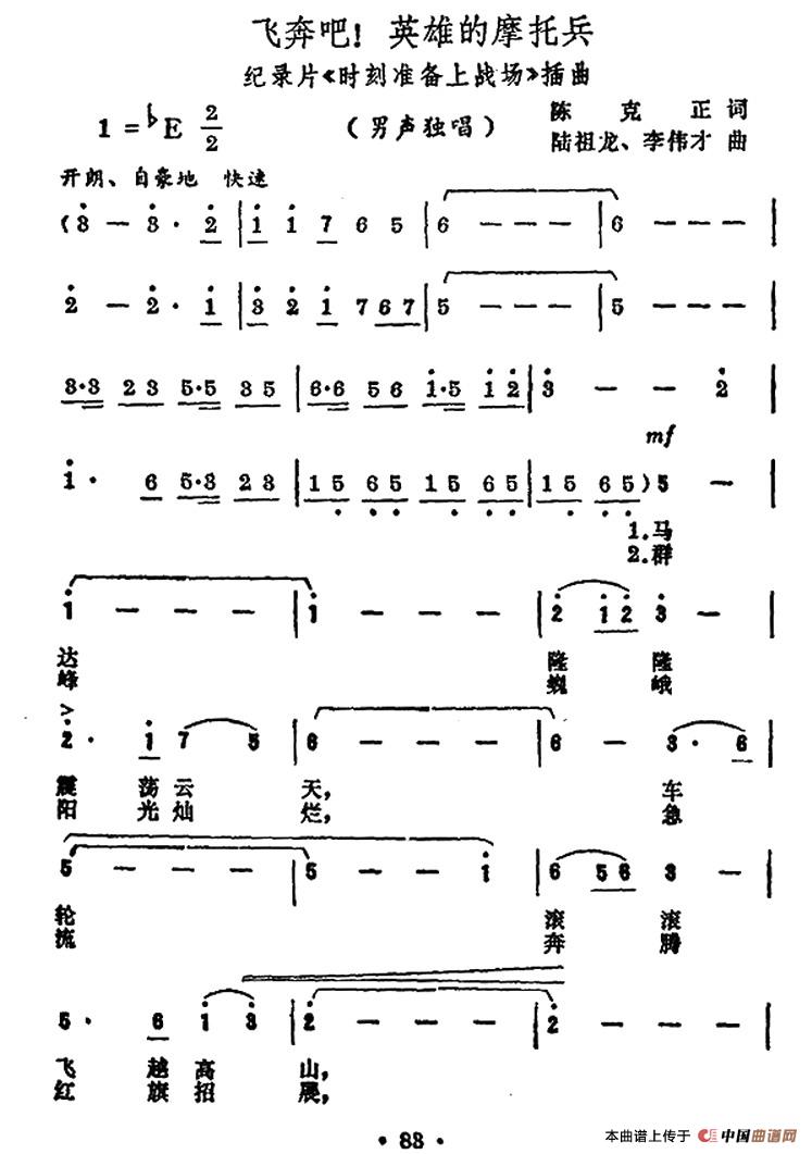 关于《飞奔吧!英雄的摩托兵》曲谱的评论