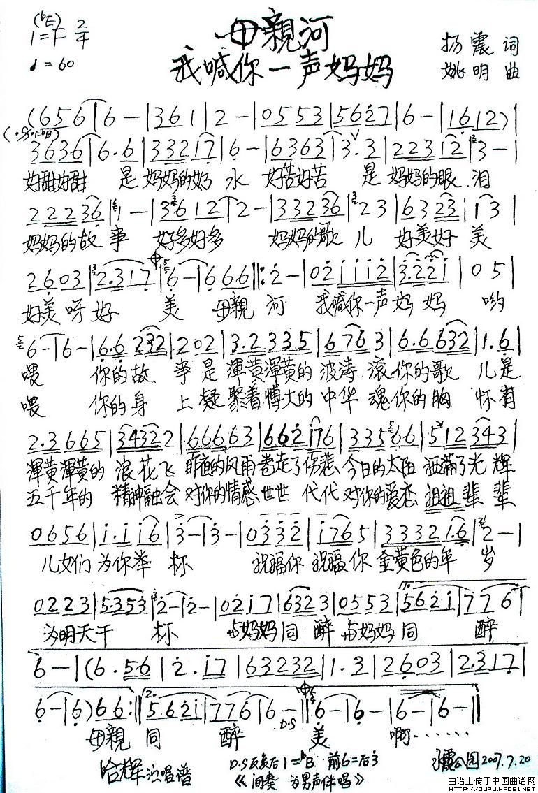 关于《母亲河我喊你一声妈妈》曲谱的评论