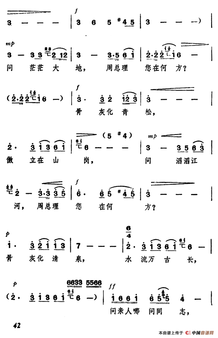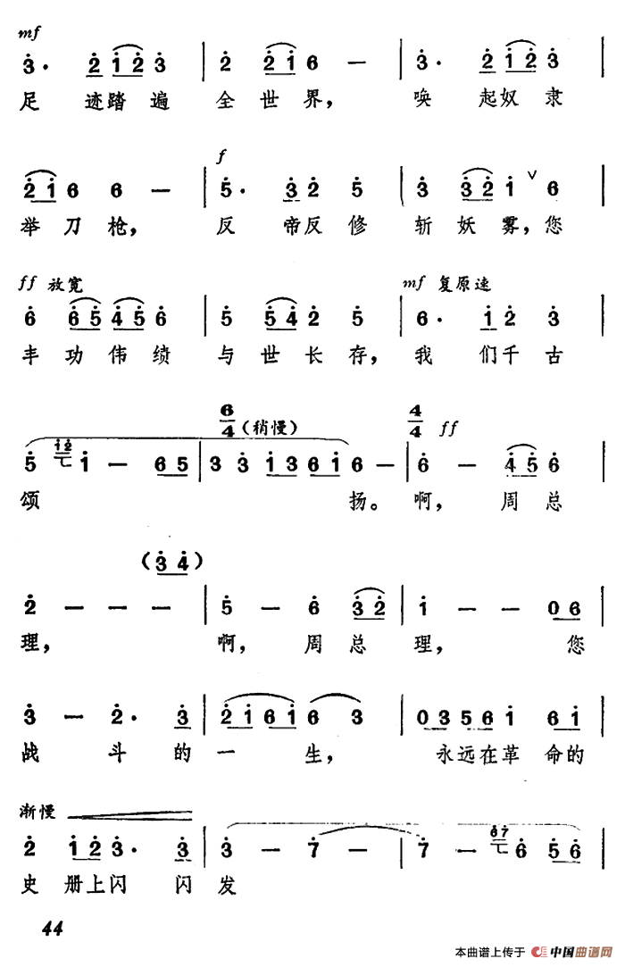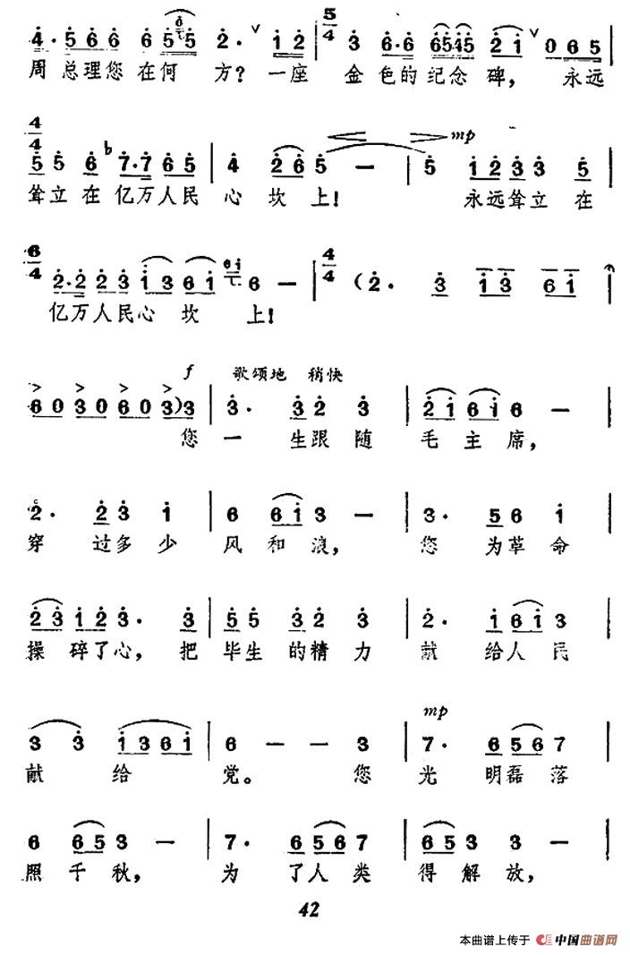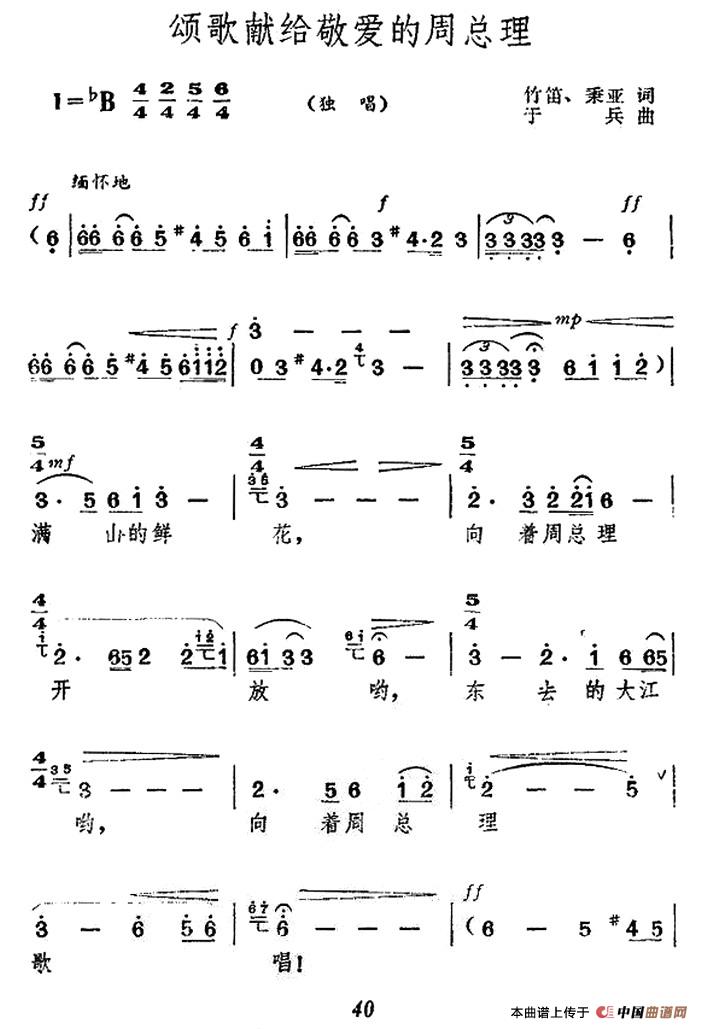 关于《颂歌献给敬爱的周总理》曲谱的评论