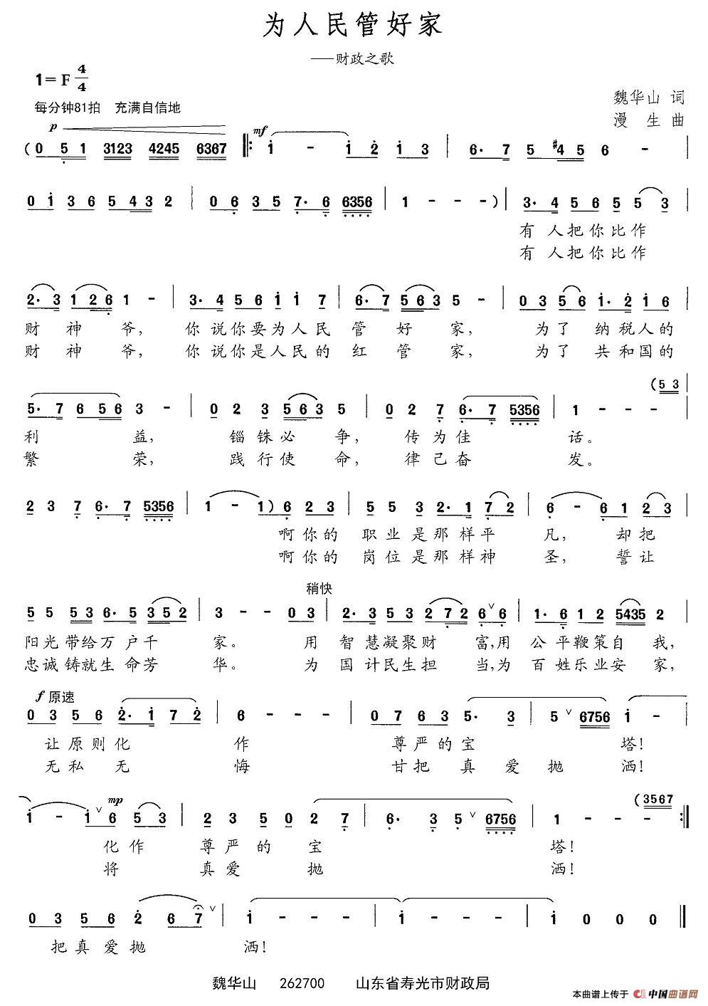 关于《为人民管好家》曲谱的评论