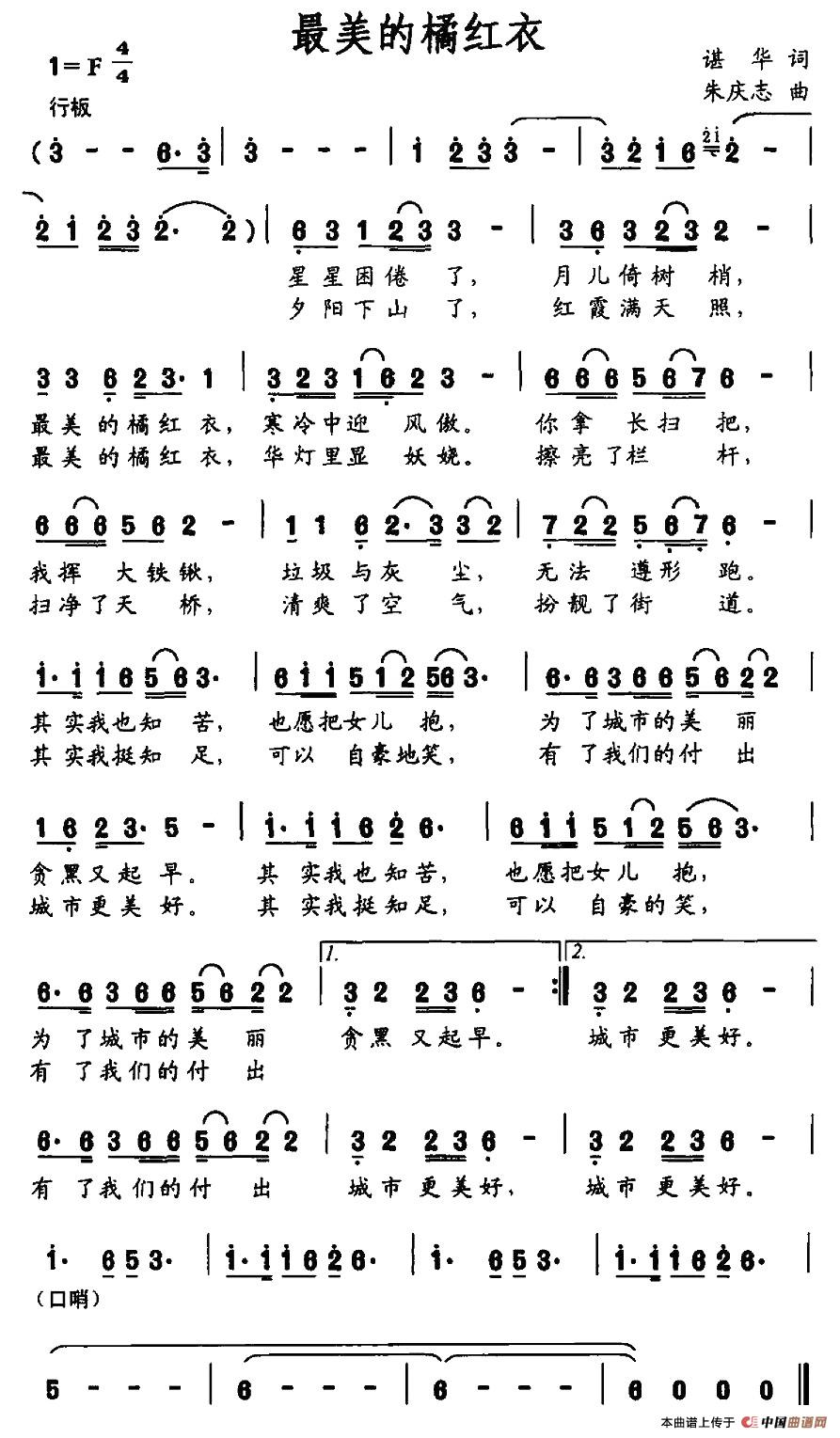 作词:谌华 作曲:朱庆志 来源:《中国曲谱网》 上传:秋叶起舞