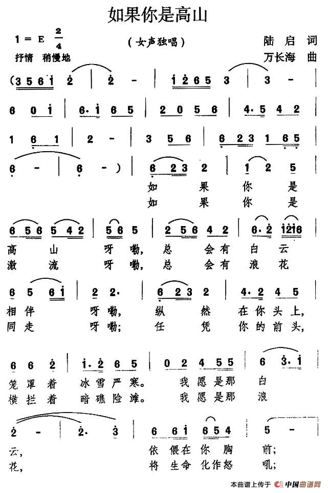 提示:在曲谱图片上单击右键,选择“图片另存为...”即可将曲谱保存到您的电脑中,打印时候可将图片插入到WORD中,调整合适大小打印即可。