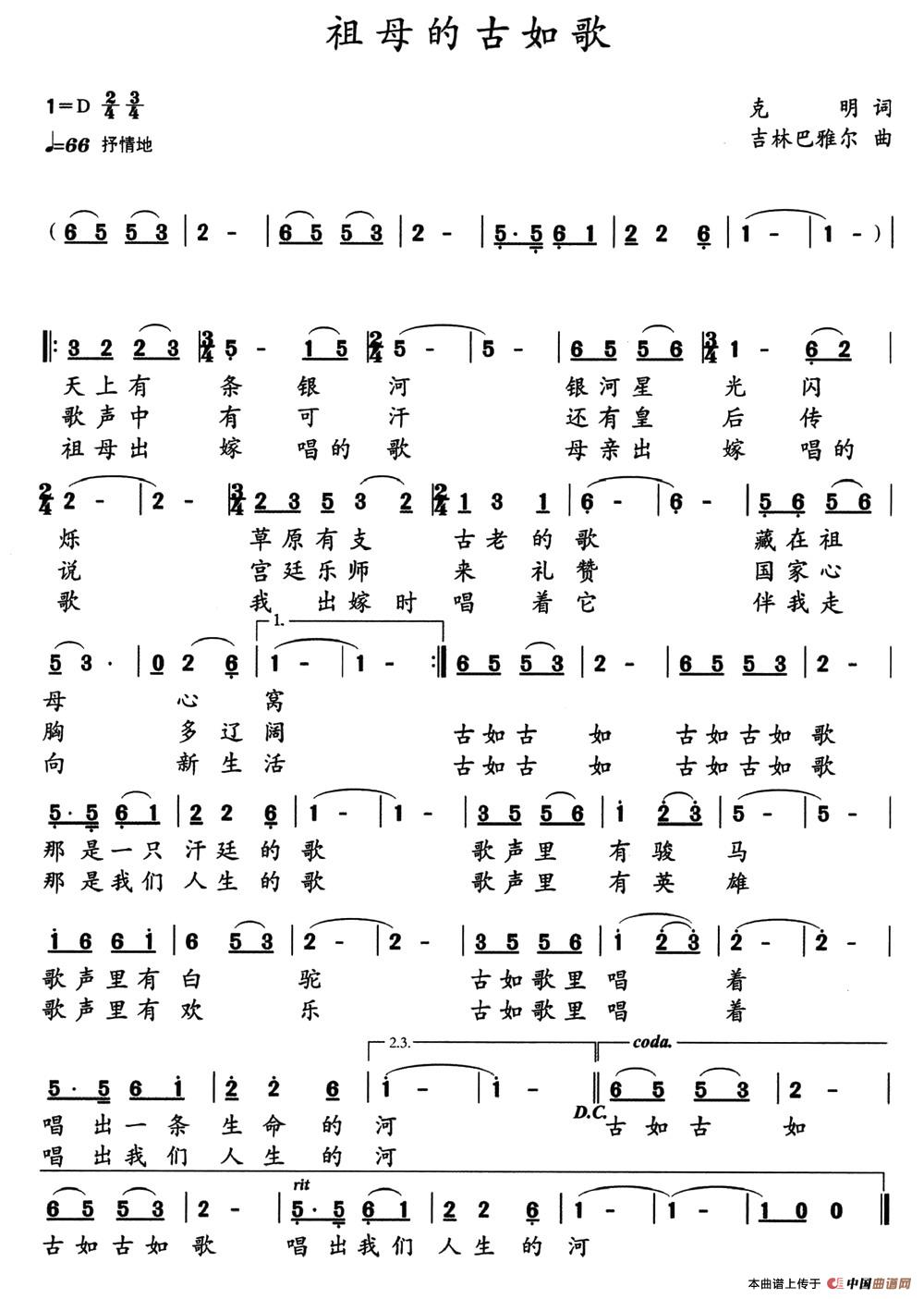 关于《祖母的古如歌》曲谱的评论