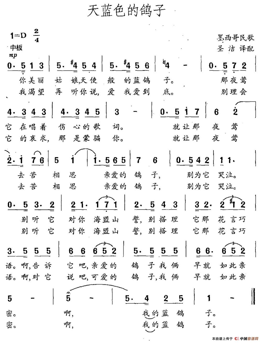 天蓝色的鸽子(墨西哥民歌 圣洁译配)
