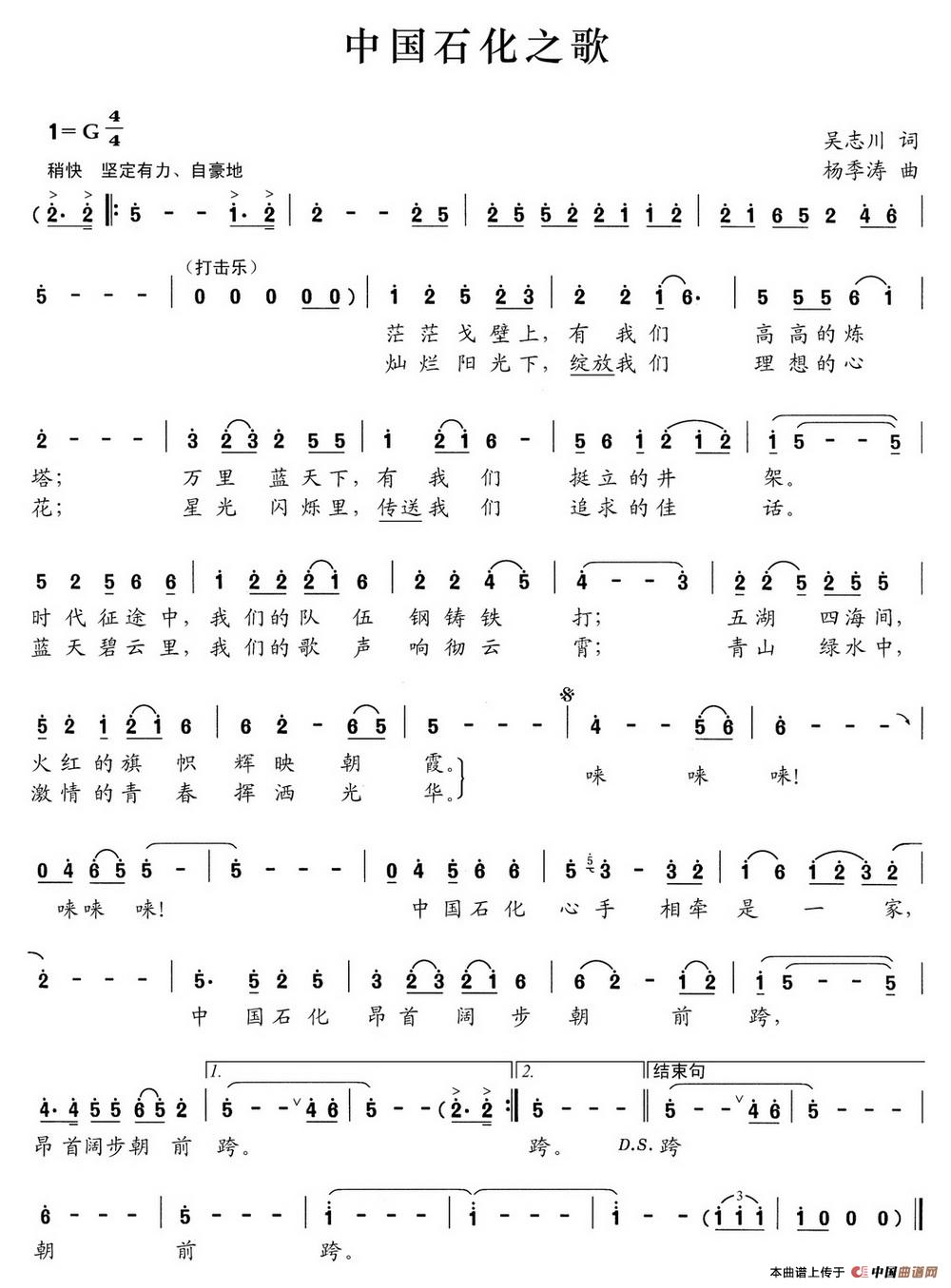 关于《中国石化之歌》曲谱的评论