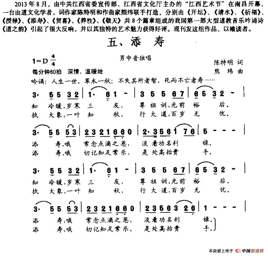 关于《道之韵 五、添寿》曲谱的评论