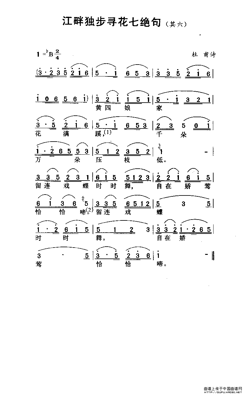 关于《江畔独步寻花·七绝句其六》曲谱的评论
