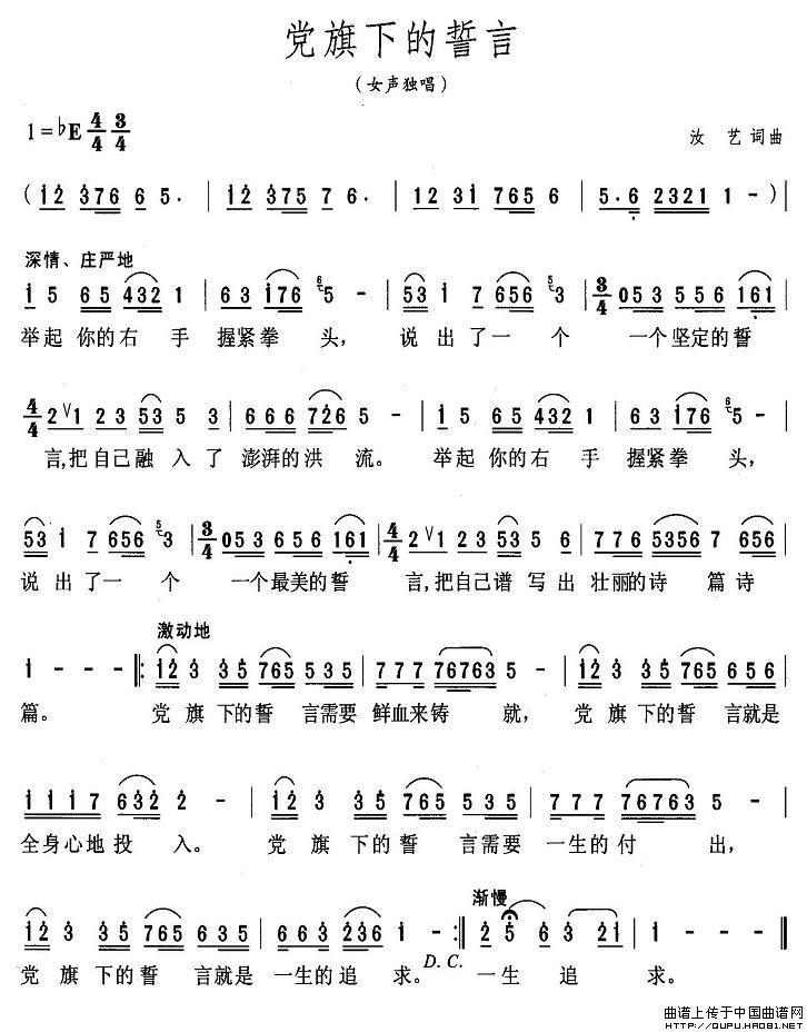 关于《党旗下的誓言》曲谱的评论