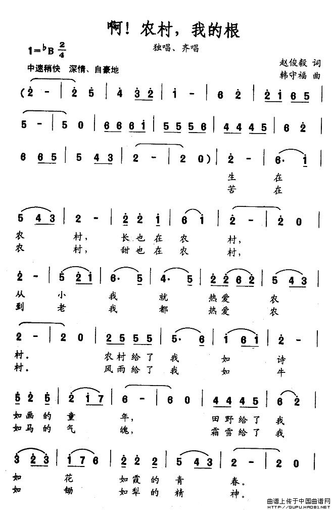 关于《啊,农村,我的根》曲谱的评论