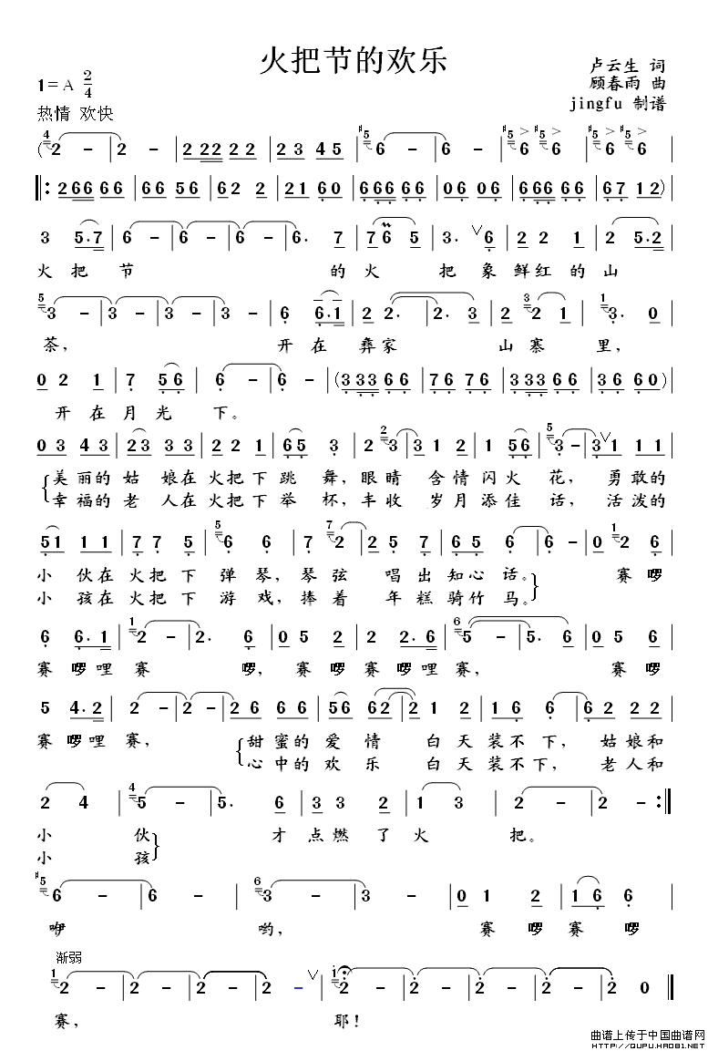 此歌在“怀旧音乐论坛”也称作“火把节”,歌唱家吴雁泽也唱过这首歌。