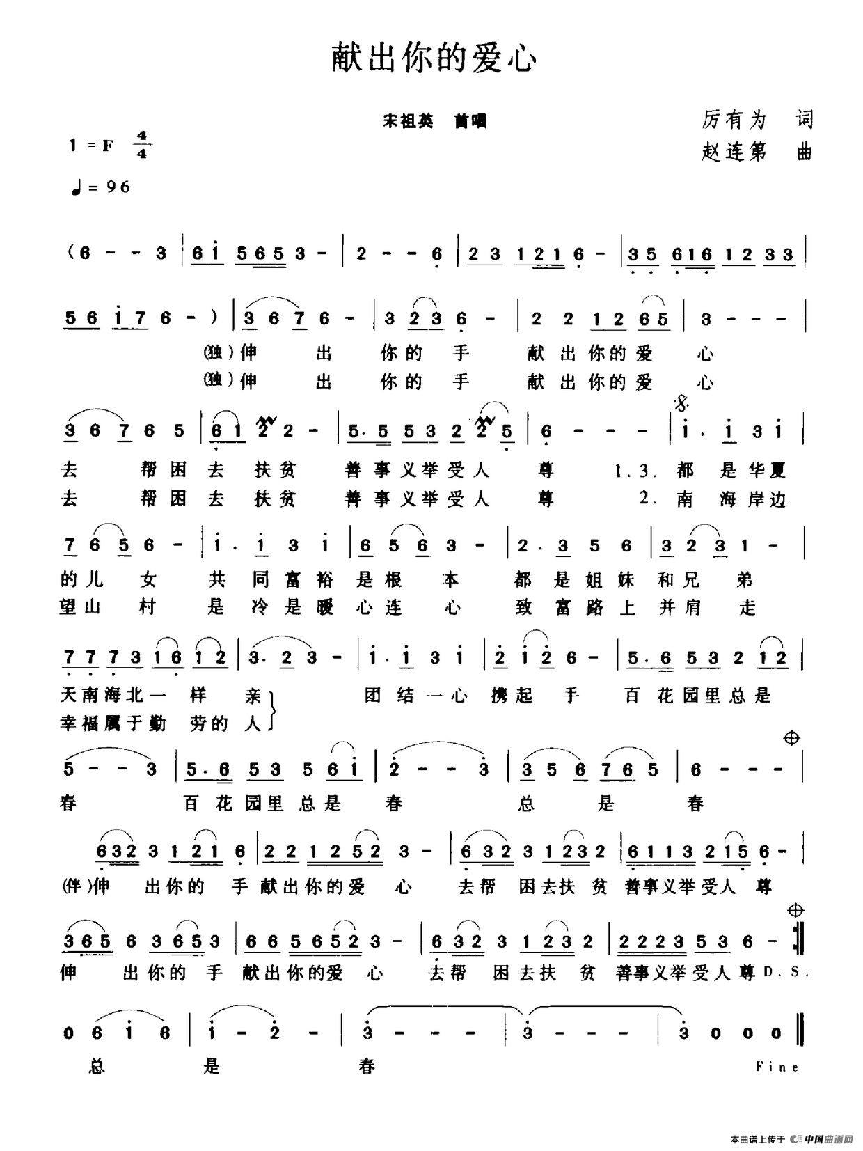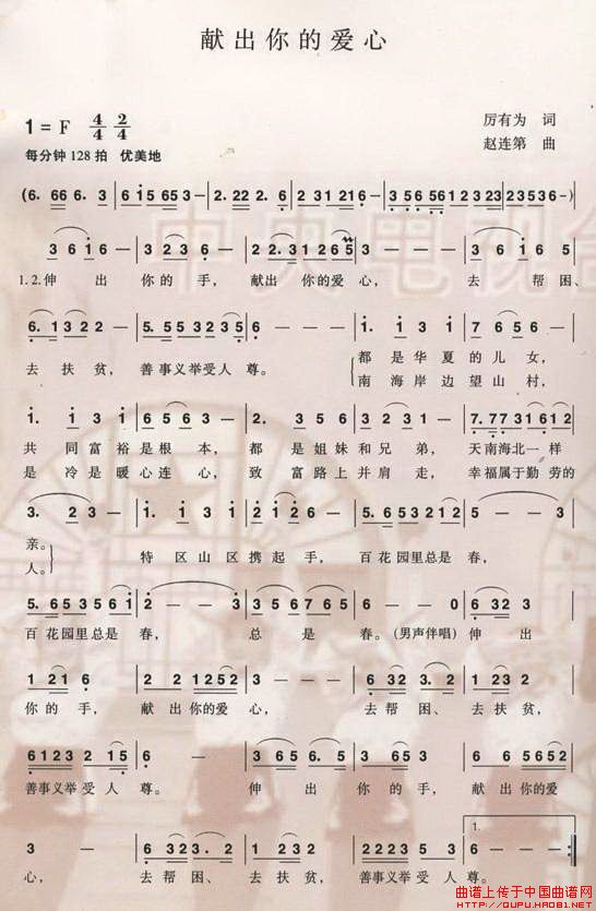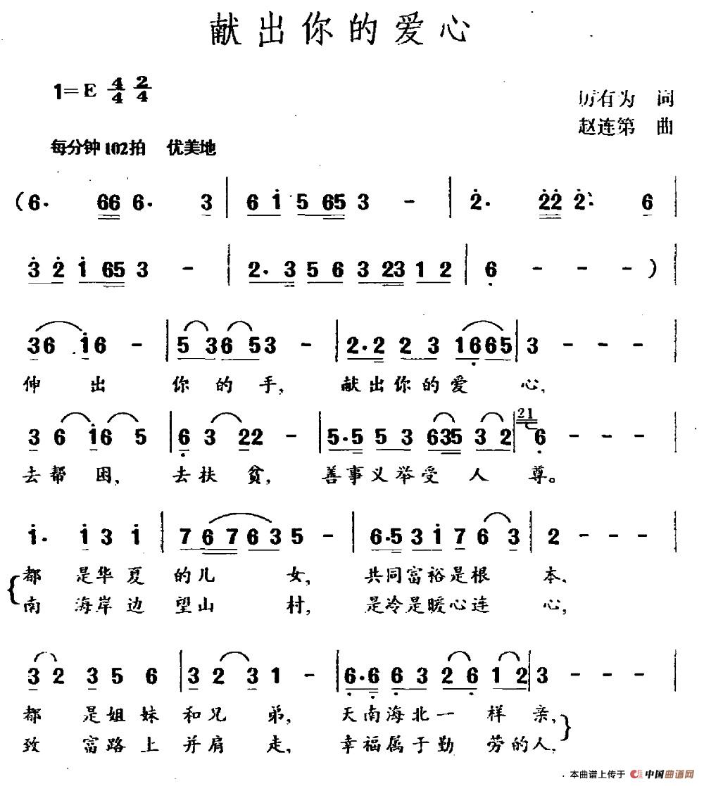关于《献出你的爱心》曲谱的评论