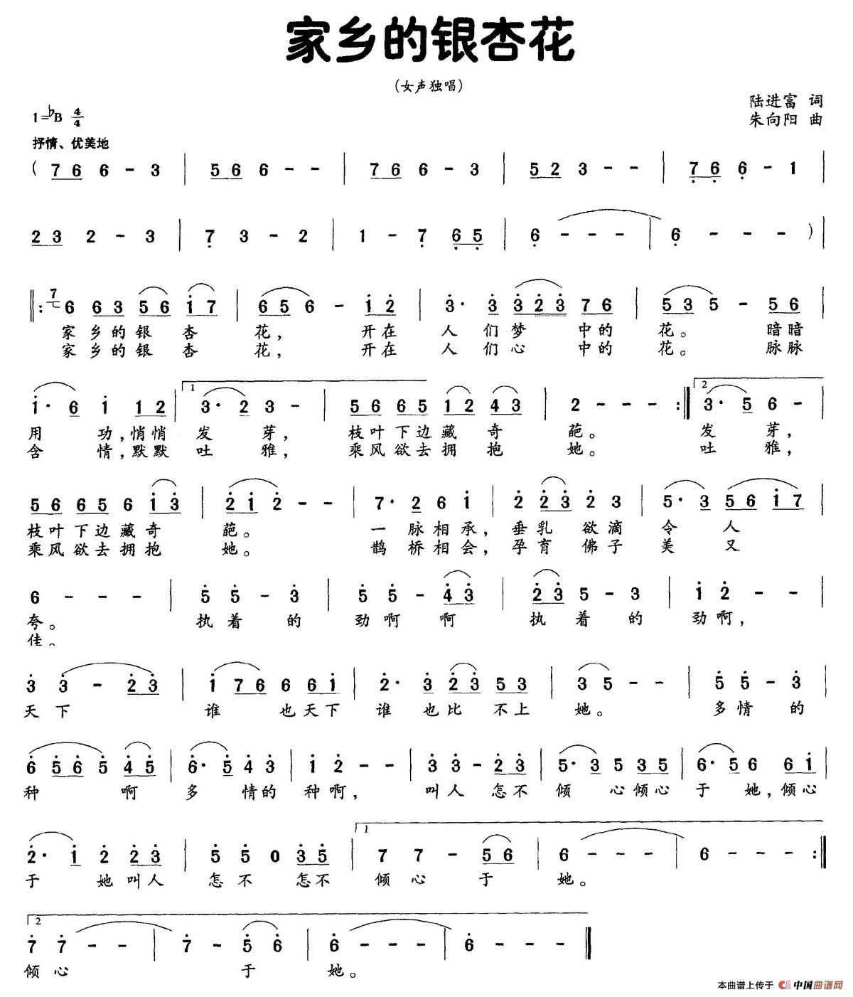 关于《家乡的银杏花》曲谱的评论