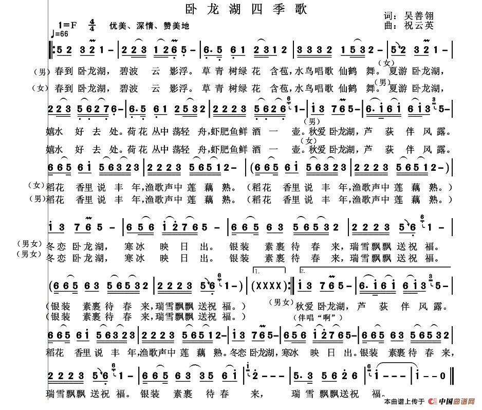 致谢:《中国曲谱网》衷心感谢作者老师馈赠原版歌谱!